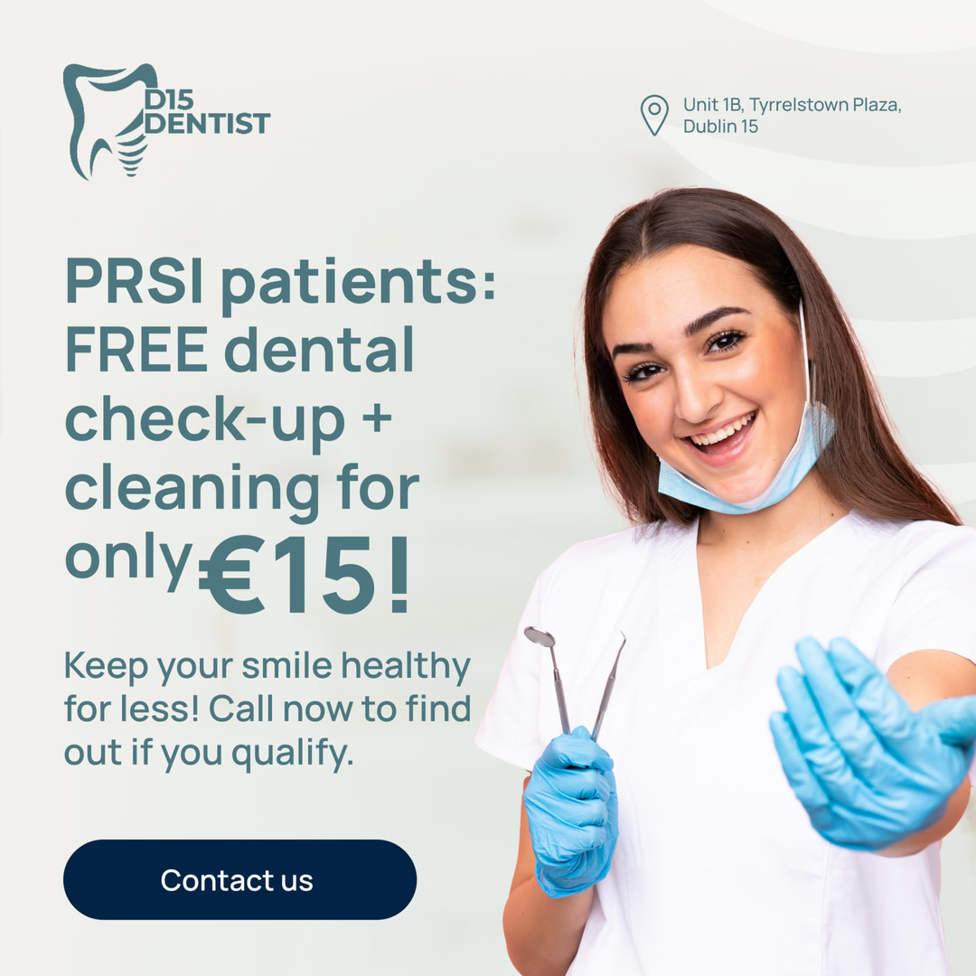 Affordable dental care is just a call away! If you’re eligible for PRSI, you can get a FREE dental check-up and professional cleaning for just €15.