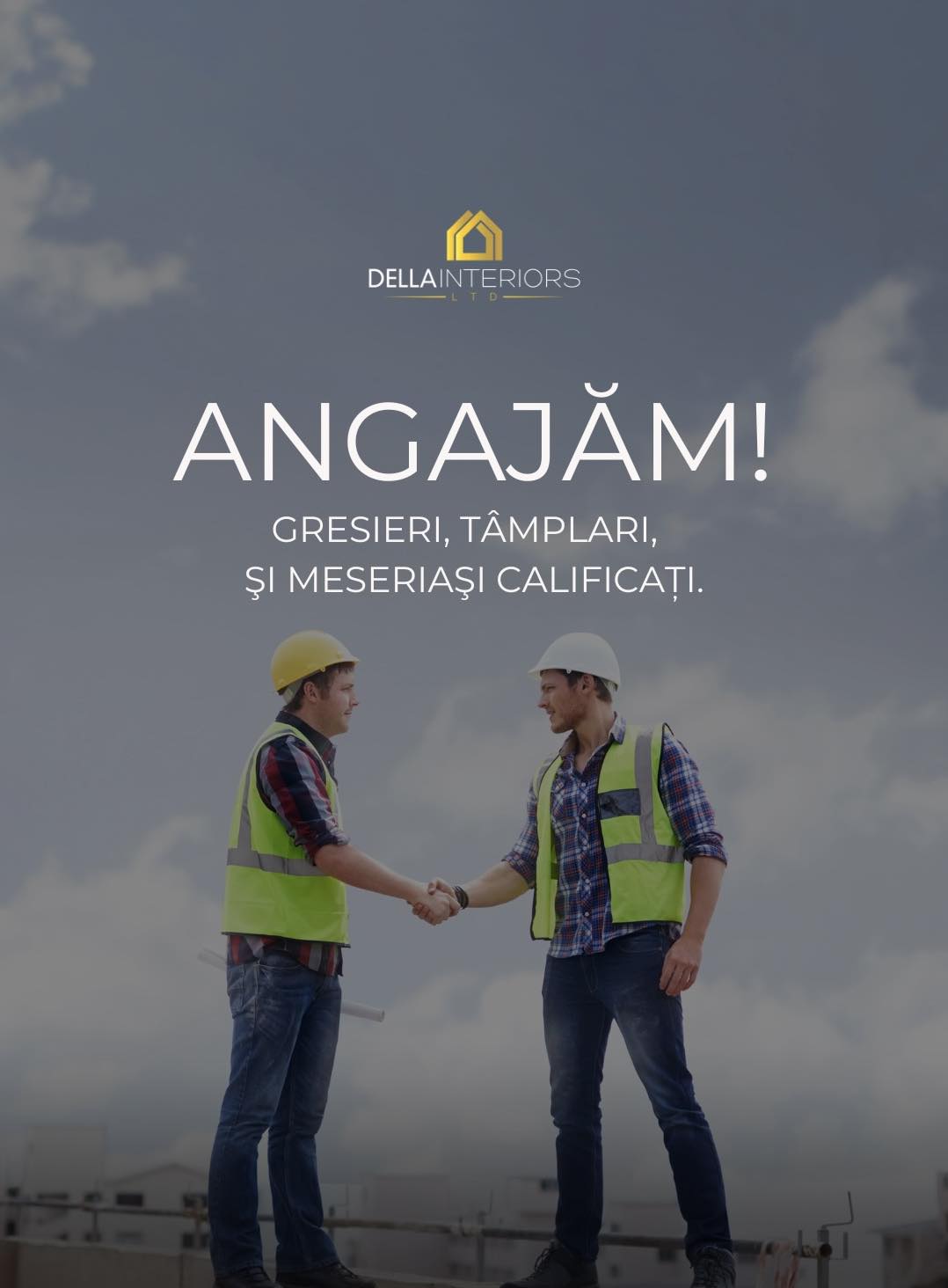 DELLA INTERIORS este o companie dinamică, specializată în construcție, renovare și design interior, care pune accent pe calitate, seriozitate și lucrul bine făcut. Oferim un mediu de lucru stabil, proiecte interesante și respect pentru munca ta.